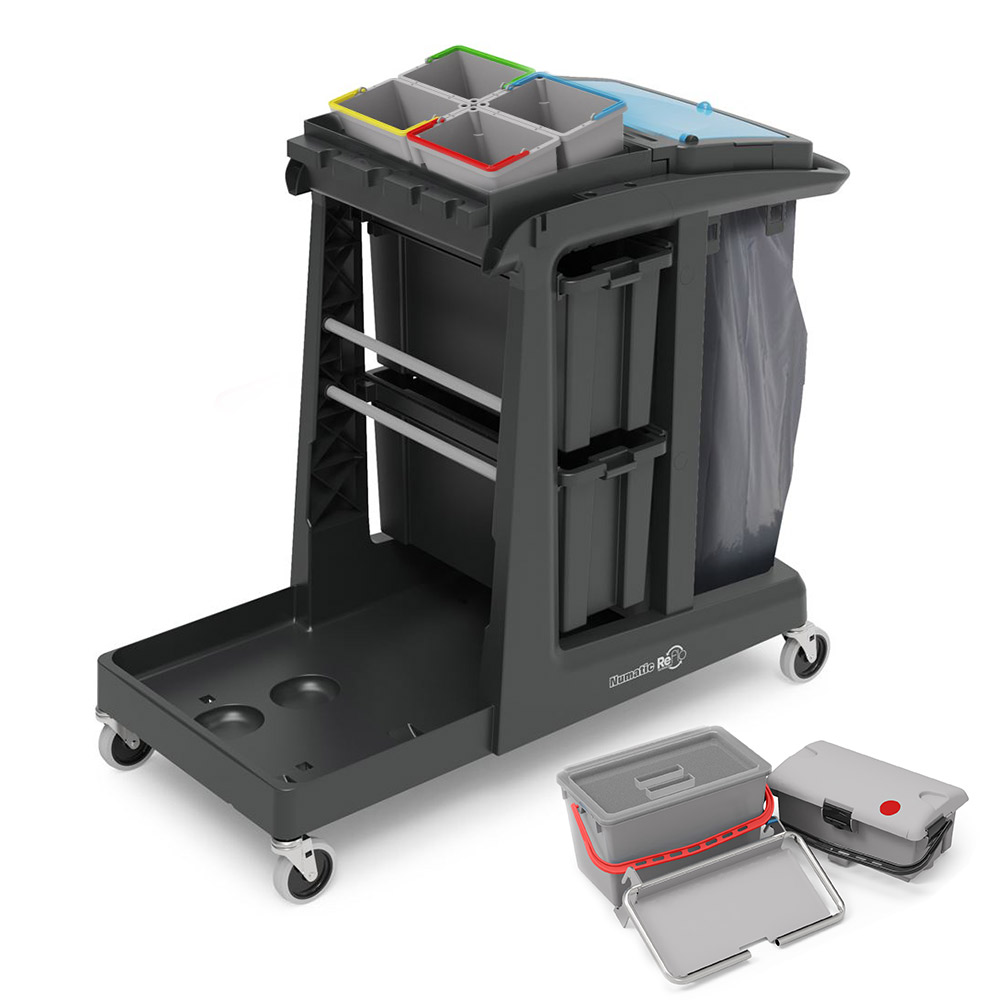 Wózki serwisowe Numatic to doskonały wybór dla każdego obiektu użyteczności publicznej, w którym wymagane jest regularne sprzątanie. Charakteryzują się lekką konstrukcją, która ułatwia ich obsługę. Co więcej, oprócz kompaktowych wymiarów, wózki serwisowe Numatic mają wiele miejsca do przechowywania, co czyni je idealnymi do transportowania środków czystości oraz innych przyborów do sprzątania. Polor oferuje szeroką gamę profesjonalnych wózków gospodarczych do sprzątania, dzięki którym proces czyszczenia będzie bardziej wydajny.